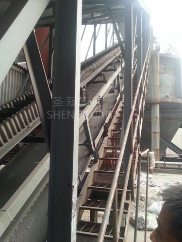 •   DJ型大傾角皮帶轉(zhuǎn)送機(jī)其結(jié)構(gòu)是在平形橡膠運(yùn)輸帶兩側(cè)粘上可自由伸縮的橡膠波形立式“裙邊”,在裙邊之間又粘有一定強(qiáng)度和彈性的橫隔板組成匣形斗,使物料在斗中進(jìn)行連續(xù)輸送??蓮V泛用于煤炭、糧食、建材、化工、水電和冶金等部門,在環(huán)境溫度為-15℃~+40℃范圍內(nèi),輸送堆積比重為0.5-2.5t/m3的各種散狀物料。對(duì)于輸送有特殊要求的物料,如高溫,具有酸、堿性、油類物質(zhì)或有機(jī)溶劑等成分的物料,需采用特殊的擋邊輸送帶,輸送傾角0°~90°范圍內(nèi)。