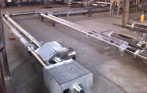 管鏈輸送機(jī)包括主動(dòng)箱(從動(dòng)箱>、8齒鏈輪、電機(jī)減速機(jī)、帶盤(pán)片的輸送鏈條,輸料管道。